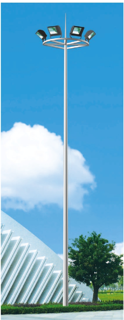 三、組成說明:電動升降式高桿燈,主要由活動燈盤、燈桿、地基組成。其中包括:升降系統、電氣系統、防雷保護系統、照明燈具系統組成。