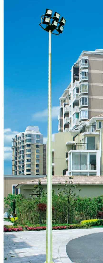 三、組成說明:電動升降式高桿燈,主要由活動燈盤、燈桿、地基組成。其中包括:升降系統、電氣系統、防雷保護系統、照明燈具系統組成。