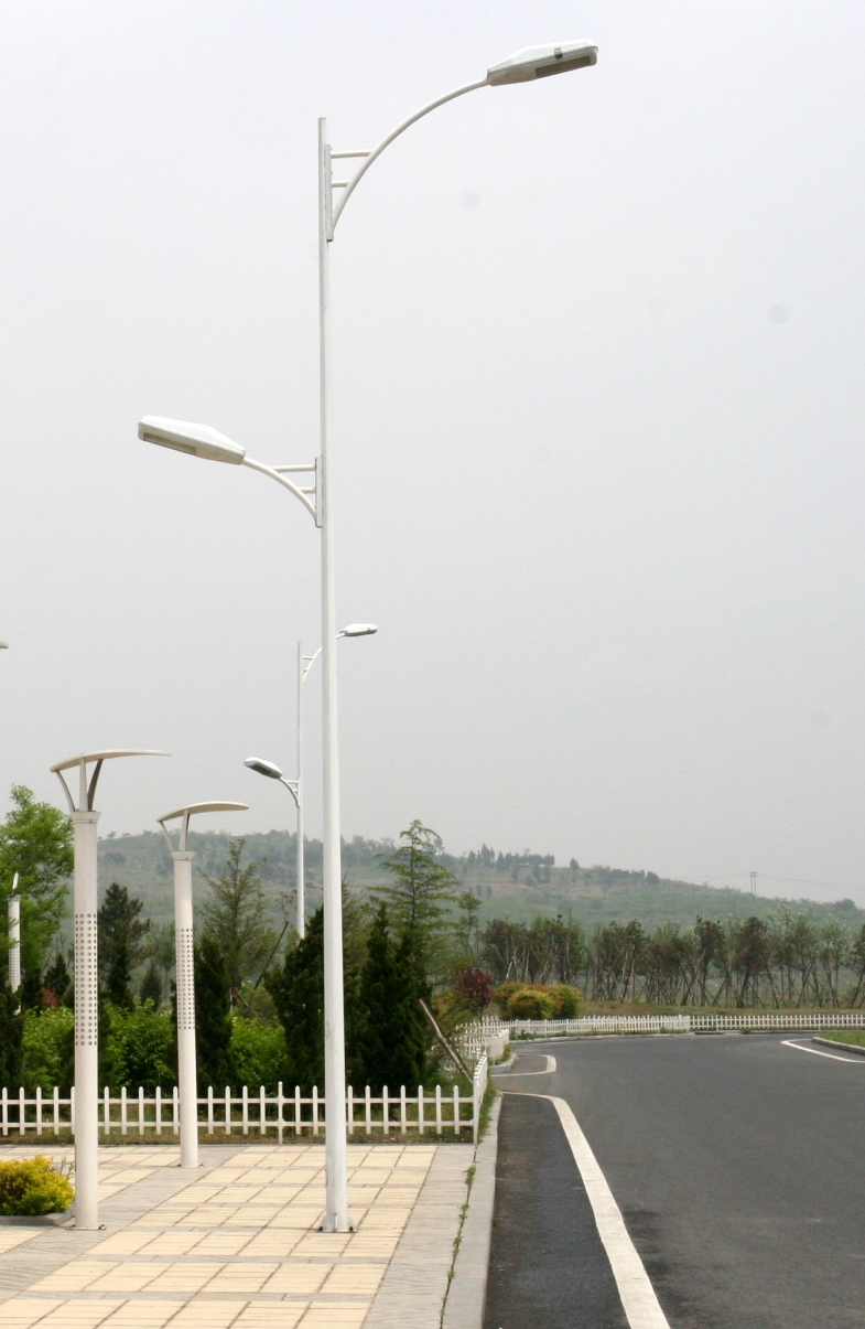 1. 燈桿材質選用優質碳素鋼,根據路燈桿高度及燈臂和安裝燈具重量可選板厚3.0㎜—4.0㎜不等。